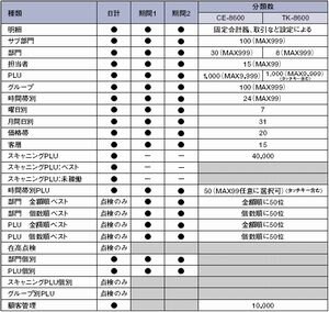 固定合計器、取引、各部門、および各担当者の売上明細、売上個数/金額が集計できます。